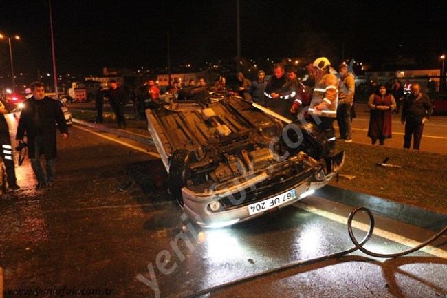 Kaza Ereğli Gülüç karayolu Zübeyde Hanım bulvarı üzerinde meydana geldi. İddiaya göre sürücüsünün direksiyon hakimiyetini kaybettiği 67 UF 204 plakalı otomobil kaldırıma çarptı. Takla atarak yaklaşık 100 metre sürüklenen ve ters dönen araçta bulunan iki kadın Ş.N.E. (25) ve B.K. (24) kendi imkanları ile araçtan çıkmayı başardı. Olay yerine gelen sağlık ekipleri iki kadını ambulansa alarak ilk müdahalelerini yaptı. Ş.N.E. ve B.K. yapılan müdahalenin ardından Ereğli devlet hastanesine kaldırıldı.