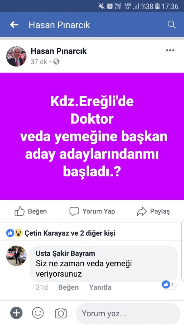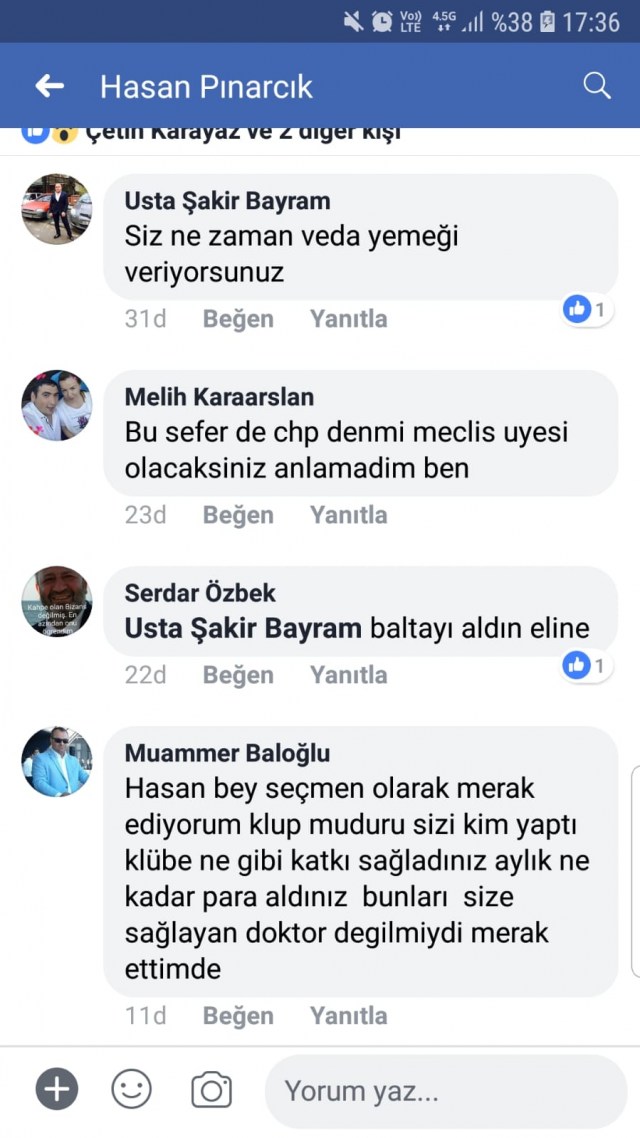 2014 yerel seçimleri öncesi CHP'den AK Parti'ye geçip, Hüseyin Uysal'ın listesinden meclise giren Hasan Pınarcık'ın sosyal medya hesabından paylaştığı yorum başına bela oldu.