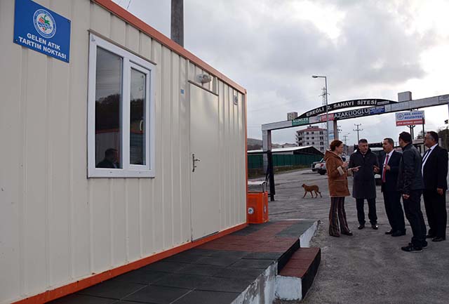 Kdz. Ereğli Belediyesi’nin Yeni Şantiyesinin de bulunduğu, Belen Sanayi Sitesi girişindeki 1500 metrekarelik alana kurulan tesis de incelemelerde bulunan Kdz. Ereğli Belediye Başkanı Hüseyin Uysal, Atık Getirme Merkezi’nde atık piller, bitkisel atık yağlar, atık elektrikli ve elektronik eşyalar, ömrünü tamamlamış lastikler, ambalaj atıkları, hacimli atıklar, flüoresan lambalar ve diğer civa içeren atıklar, atık ilaçlar ve evlerden kaynaklanan tehlikeli atıkların toplanarak geri dönüşüm faaliyetleri kapsamında yeniden değerlendirilerek değişik sektörlerde hammadde olarak kullanılacağını söyledi.