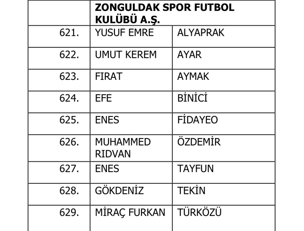 Zonguldak Spor Kulübü’nden 9 Futbolcu Listede