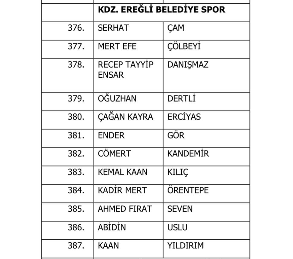 Yapılan incelemelerde Kdz. Ereğli Belediyespor’dan da 12 futbolcunun bu listede yer aldığı öğrenildi.