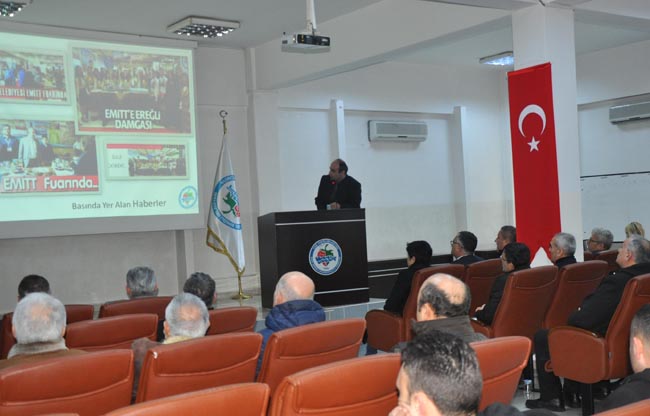 EMİT Fuarı tanıtım toplantısına Kdz.Ereğli Belediye Başkan Yardımcıları Esra Alpago, Ayhan Atay ve Atilla Bulak, Muhtarlar Derneği Başkanı Şükrü Kılıç, Milli Eğitim Müdürü Numan Korkmaz, Müze Müdürü Ahmet Mercan, daire müdürleri, muhtarlar ve Sivil Toplum Örgütü temsilcileri katıldı.