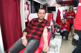 İftar programına katılan çok sayıda madenci ve Kızılay gönüllüsü Gülüç Belediyesi Düğün Salonu çıkışına kurulan kan toplama aracında Kızılay’a kan bağışında bulundu.