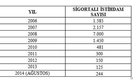 2006 - 2014 YILLARI İSTİHDAM RAKAMLARI