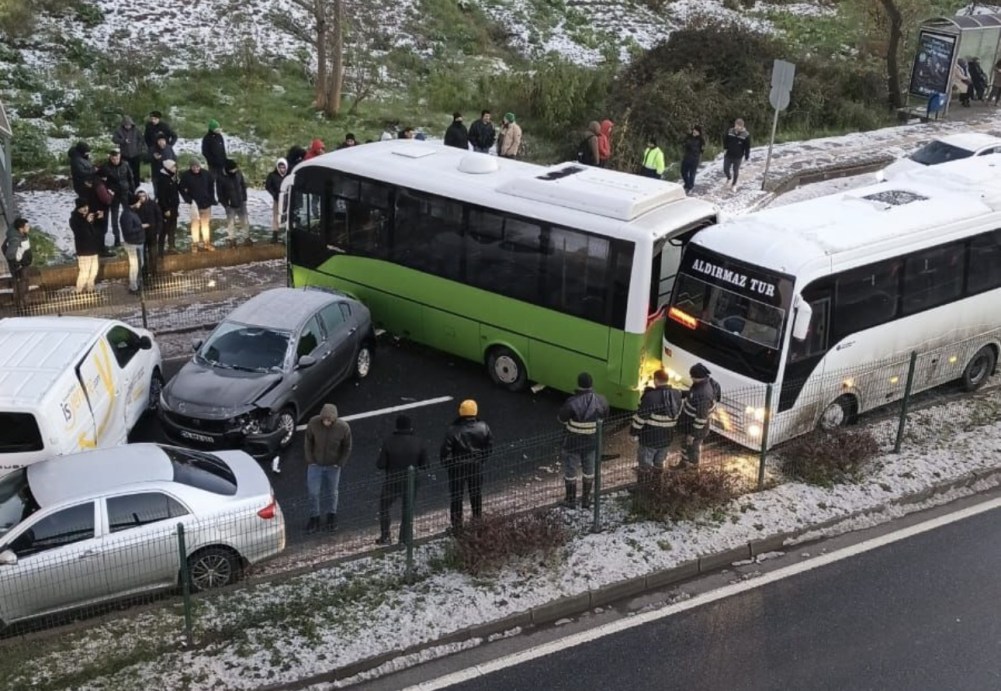 Edinilen bilgilere göre, kayganlaşan yolda ilerlemekte zorlanan araçlar duramayarak birbirine çarptı. Kazada 5 araç birbirine girerken, araç sürücüleri panik yaşadı.