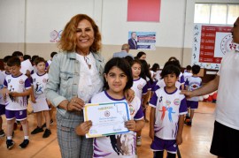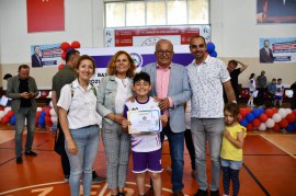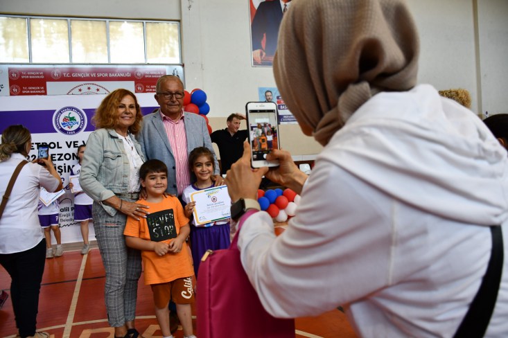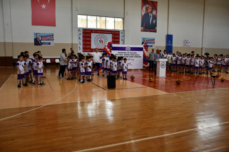 Başkan Posbıyık’ın konuşmasının ardından Basketbol ve Voleybol eğitimi gören 130 çocuğa Başkan Posbıyık, eşi Neriman Posbıyık ve Belediyespor yöneticileri tarafından katılım belgeleri ve gelişim karneleri verildi, hatıra fotoğrafı çektirildi.