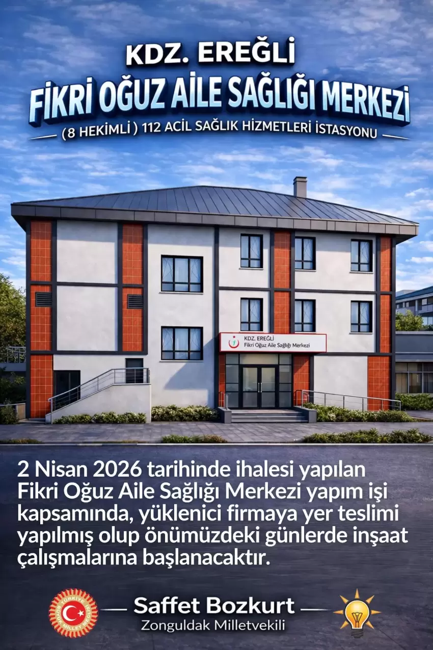 "2 Nisan 2026 tarihinde ihalesi yapılan Fikri Oğuz Aile Sağlığı Merkezi yapım işi kapsamında, yüklenici firmaya yer teslimi yapılmış olup önümüzdeki günlerde inşaat çalışmalarına başlanacaktır."