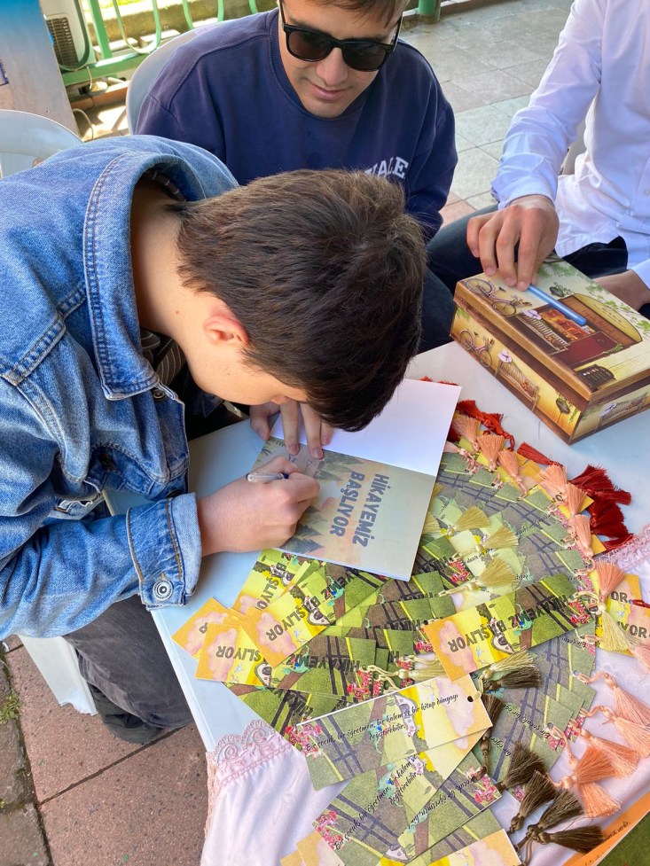 "Hikayemiz Başlıyor" adlı hikaye kitabı yaygınlaştırma ve toplumsal farkındalık oluşturması amacıyla öğrenciler ile birlikte İlçe Milli Egitim Müdürümüz Harun AKGÜL, Şube Müdürlerimiz Şenol KARAARSLAN ve İlhan ÜSTÜNER’in de katılımıyla imza günü düzenlediler.