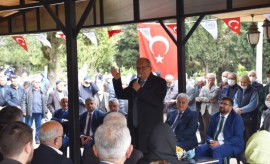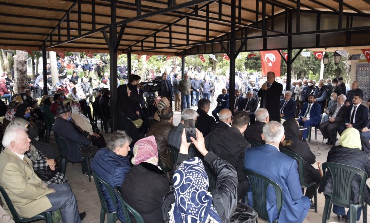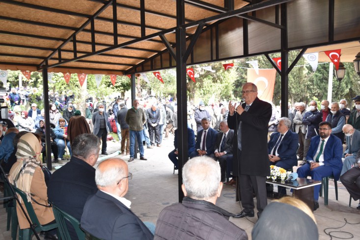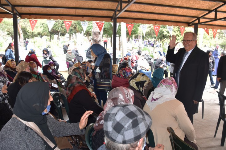 Kadir gecesinde 15 bin kişiyle iftar yaptık. Bütün dostlarımız ve halkımız katıldı. Muhteşem bir gece geçirdik. Bugünde arife gününde mevlid programında birlikteyiz. Ölümüze sahip çıkıyoruz. Ölüsüne sahip çıkmayan, dirisine zaten sahip çıkamaz. O şiarla hareket ediyoruz. Şehir mezarlığımıza yeni yeni yollar yaptık, parke döşedik. Diğer mezarlıklarımıza da bakıyoruz. Bugün yakınlarınızın mezarlarına çiçek ekersiniz diye 40 bin fide dağıtacağız.