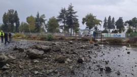 Olay yerine gelen kepçe ile düşen taşlar yoldan temizlendi.