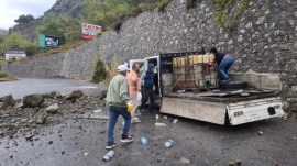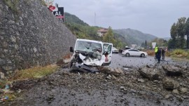 Kdz.Ereğli Plajlar mevkinde yol kenarında duran ticari aracın üzerine taş yuvarlandı. Yaşanan kaza şans eseri ucuz atlatıldı