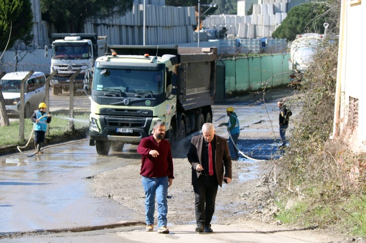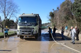 Kdz. Ereğli’de Askeri Limanın yapımına hafriyat taşıyan kamyonların yol açtığı çamur deryasından sonra Belediye Başkanı Halil Posbıyık ve halkın gösterdiği tepkinin ardından önlem alınmaya başlandı.