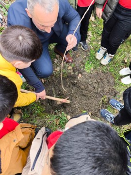 "ÇEDES (Çevreme Duyarlıyım, Değerlerime Sahip Çıkıyorum) projesiyle amacımız, sadece teorik bilgi vermek değil, öğrencilerimizin kalplerine dokunarak onlara yaşayarak öğrenme fırsatı sunmaktır. Bugün toprakla buluşturduğumuz her fidan, çocuklarımızın sabır, sorumluluk ve doğaya saygı gibi değerlerini de büyütüyor. Fidan dikmek, bir çocuğun doğaya can vermesi, onun evrendeki yerini ve sorumluluğunu anlaması adına en kıymetli derstir. Doğayı seven ve ona emek veren bir nesil, geleceğin en büyük güvencesidir. 'Minik eller, büyük gelecek' diyerek çıktığımız bu yolda, doğa sevgisini bir hayat biçimi haline getirmeyi hedefliyoruz."