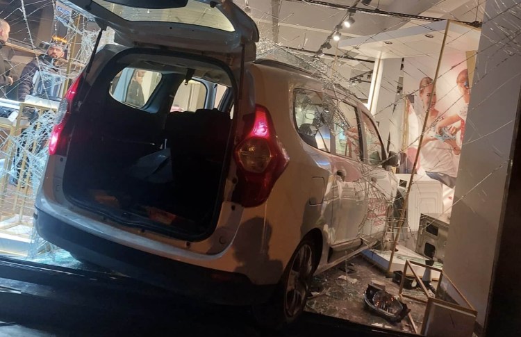 Hızını alamayan araç jet yolayrımında bulunan beyaz eşya dükkanına girdi..