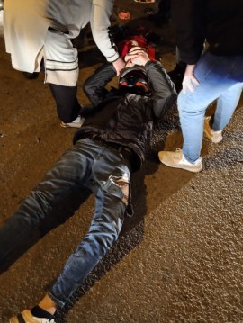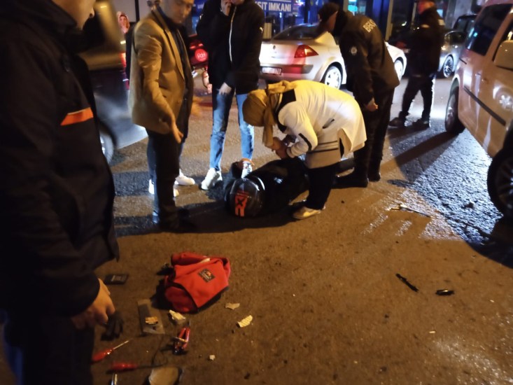 Yerde hareketsiz halde yatan motor sürücüsüne vatandaşlar tarafından haber verilen 112 acil ekibi yaptı.