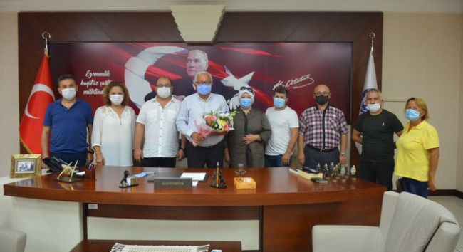 Avrupa Kdz.Ereğliler Derneği Başkanı İsmail Aydın, beraberinde Mehmet Bayramcı, Fatih Demircan, Oktay Kılıç, Şükrü Sezgin, Sevim Can, Cemal Akkanat, Teyhan Çınar, Ereğli esnaflarından Çetin Danyıldız, Av. Engin Güner ve Belediye Meclis Üyesi Yaşare Aydın ile birlikte gerçekleştirdiği ziyarette, derneğin onursal başkanı olarak Belediye Başkanı Halil Posbıyık’ı seçtiklerini açıkladı.