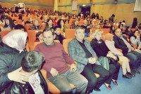 Salonu tıklım tıklım dolduran tiyatro severler, ayakta kalmasına rağmen oyunu beğeni ile izlediler.