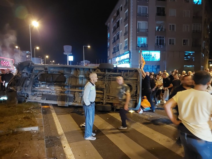 Çarpmanın etkisiyle yan yatan araçta 5 kişi hafif yaralandı.