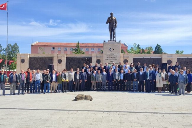 Keşan Ziraat Odası önünde toplanan Keşan Ziraat Odası yöneticileri ile çiftçiler burada törenin yapılacağı Cumhuriyert Meydanı'ndaki Atatürk Anıtı'na kadar yürüyerek geldi.