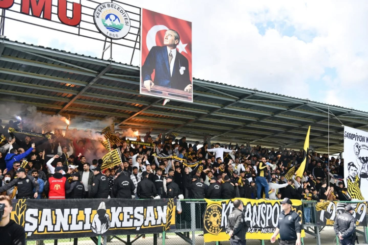 Keşansporlu taraftarlar takımlarına büyük destek verirken, maçtan önce taraftarlara Keşanspor bayrağı dağıtıldı.