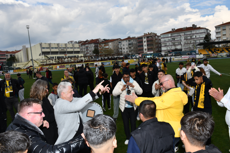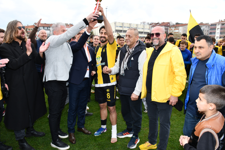 Edirne Amatör Spor Kulüpleri Federasyonu Başkanı Muzaffer Yıldırım, ASKF Yönetim Kurulu Üyesi Erkan Davas ve Keşanspor Kulübü Başkan Mehmet Yavaş ile takım kaptanı Emre Aydın'a şampiyonluk kupasını verdi.