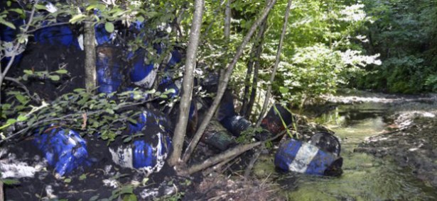 Alaplı ilçesinden Karadeniz'e dökülen Kavukkavla Deresi yatağında içinde kimyasal atık olduğundan şüphelenilen 30 varil bulundu.