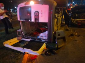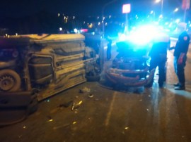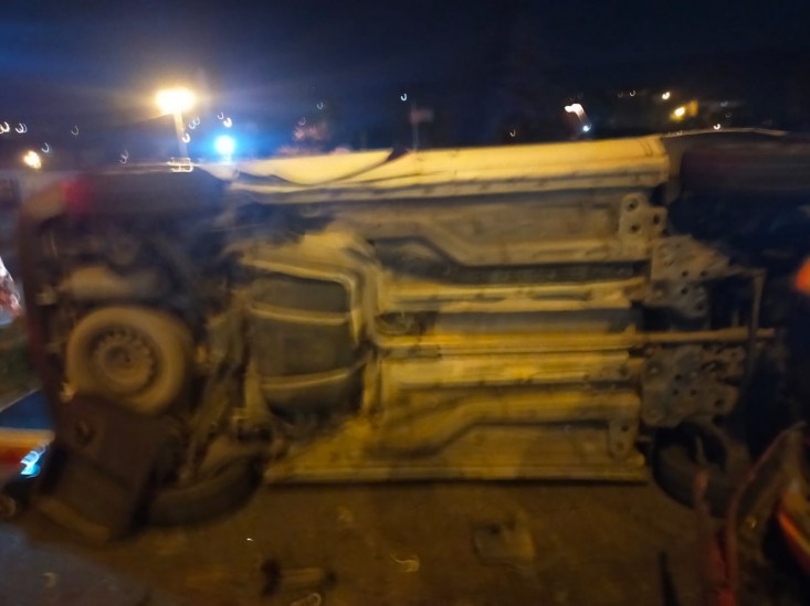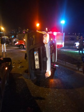 Çarpmanın etkisiyle savrulan savrulan 16 HD 371 plakalı araç takla atarken, sürücüsü yaralandı..