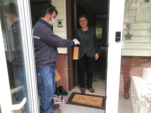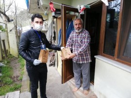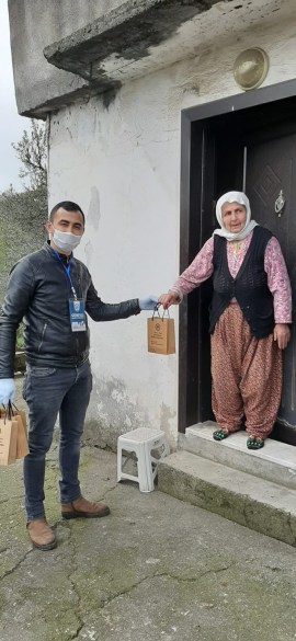 Maske, el dezenfektanı, sabun ve bilgilendirici notların yer aldığı sağlık setini alan vatandaşlar, Belediye Başkanı Halil Posbıyık’a ve emeği geçenlere teşekkürlerini iletiyorlar.