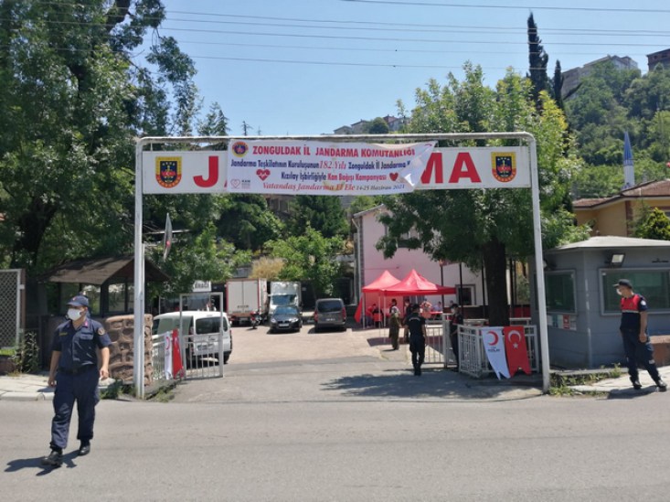 "Zonguldak İl Jandarma öncülüğünde, Jandarmanın kuruluşunun 182.yılı münasebeti ile 14 Haziran da merkez ilçede başlayan kan bağışı etkinliği Jandarma Kızılay elele sloganı ile 2 hafta boyunca devam etmiştir. 24 Haziran Perşembe günü Kdz.Ereğli Jandarma Karakol Komutanlığı nda gerçekleşen etkinlikte 142 Ünite kan bağışı alınmıştır."