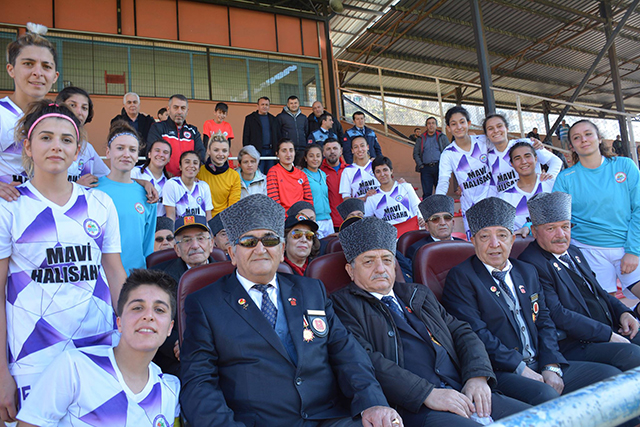 Sezonun5.galibiyetini alan eflatun beyazlılar 5-0’lık galibiyet sonrası karşılaşmayı izleyen Muharip Gaziler ile hatıra fotoğrafı çektirdi.
