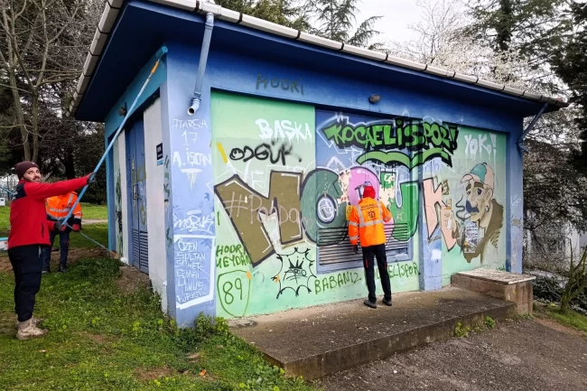 Yol ve Bakım Dairesi Başkanlığı'na bağlı ekipler, başta İzmit olmak üzere yaya ve araç trafiğinin yoğun olduğu noktalardaki trafo binalarını tek tek elden geçiriyor. Sprey boyalarla yazılan yazılar ve gelişigüzel çizimler titizlikle temizlenirken, trafoların dış yüzeyleri yeniden boyanarak kent estetiğine uygun hale getiriliyor.
