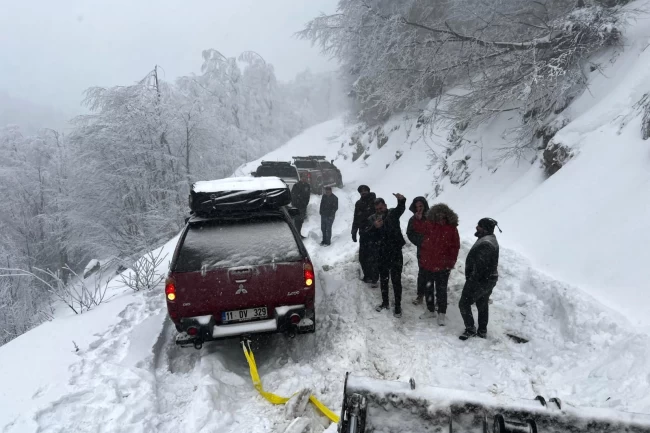 Kocaeli Büyükşehir Belediyesi Karla Mücadele Ekipleri, kırsal ve yüksek kesimlerde araçları kara saplanan 12 kişiyi kurtardı