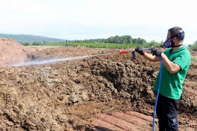 İlaçlama uygulaması, çevre ve insan sağlığına zarar vermeyen Sağlık Bakanlığı onaylı biyosidal ürünlerle yapılıyor. Hayvan dışkı biriktirme bölgeleri de Veteriner Hizmetleri Şube Müdürlüğü ekipleri tarafından ilaçlanıyor.