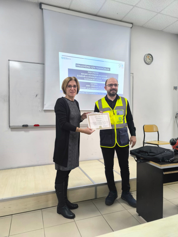 Kocaeli Büyükşehir Belediyesi, iş hayatı için önem verdiği bu eğitimlerle İSG alanında yetişen genç profesyonellerin uygulamaya yönelik farkındalığını artırmayı, kamu kurumlarında İSG kültürünün gelişimine katkı sağlamayı ve geleceğin iş güvenliği uzmanlarını desteklemeyi amaçlıyor. Bu eğitimi de bizzat gelecekte iş hayatına atılacak İSG öğrencilerine veren Büyükşehir, böylece yeni mezun olacak gençlerin iş hayatında bu güvenlikleri daha aktif ve doğru kullanmasını sağladı.