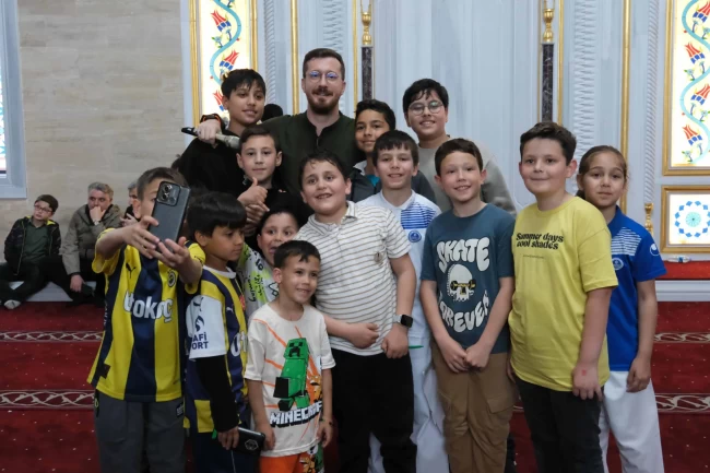 İzmit Mehmet Ali Paşa Camii'nde çocuklarla bir araya gelen Sertaç Güngör, dijital dünyada karşılaşabilecekleri risklere dikkat çekti.