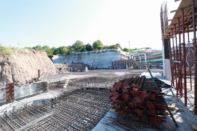 Projede C blokta -3. bodrum katta duvar kaplama imalatlarına ve mekanik cihazların montajına devam ediliyor. B blokta temel demir donatı montajı süren projede, B bloğa temel betonu dökülecek. A blokta ise grobeton dökülerek temel altı yalıtım imalatları sürüyor. Su deposuna da temel beton ve kolonların betonu döküldü. Perdelerin kalıp montajıyla kaba sıva imalatları yapılıyor.