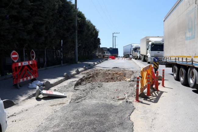 Kocaeli Gebze TIR garajları bölgesinde yol onarımı