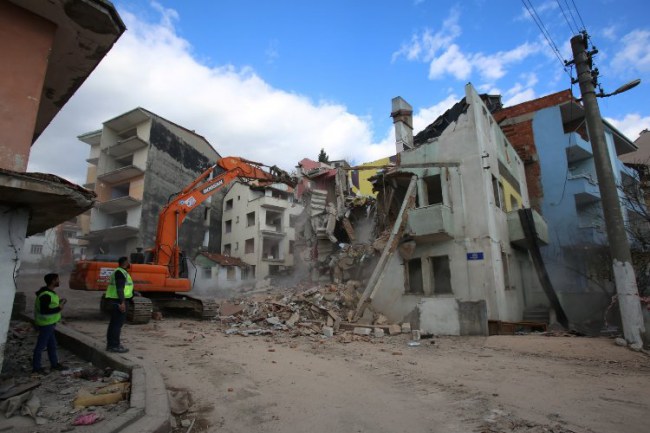 Daha önce boşaltılan evlerde son kez arama yapıldı. Boş olan binalar iş makineleriyle yıkılmaya başladı. Firma mahalledeki binaları yıkacak ve molozları da taşıyacak.