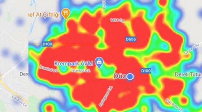 Hayat Eve Sığar uygulamasında Düzce ve ilçelerindeki 26 Temmuz 2020 tarihindeki yoğunluk haritasındaki sarı ve yeşil alanların, 26 Kasım 2020 tarihi itibari ile kırmızıya dönüşmesi vaka artışlarını gözler önüne serdi. 120 gün önceki diğer renkler vaka artışı ile birlikte kırmızıya dönüşürken, Düzce’de tedbirlerin en üst seviyeden uygulanmasına başlandı.