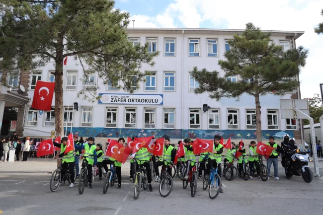 KONYA (İGFA) - Konya Büyükşehir Belediyesi'nin "Güvenli Okul Yolları Projesi" kapsamında Zafer Ortaokulu öğrencileri, 29 Ekim Cumhuriyet Bayramı'na özel sürüş etkinliği gerçekleştirdi.