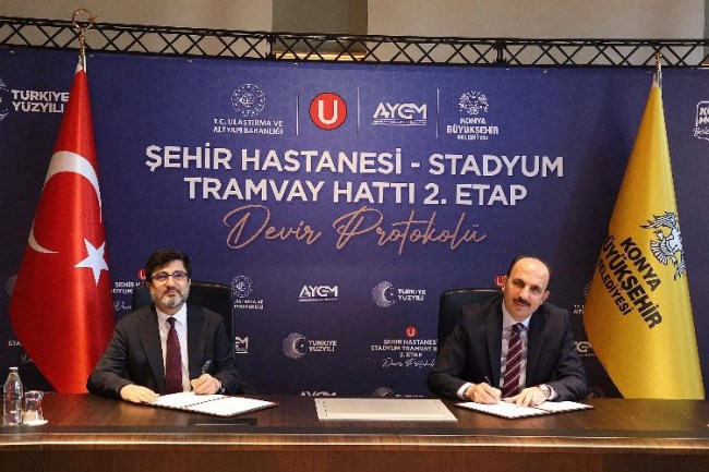 KONYA (İGFA) - Ulaştırma ve Altyapı Bakanlığı tarafından devralınan Konya Şehir Hastanesi-Stadyum Tramvay Hattı'nın 2. Etabı için Altyapı Yatırımları Genel Müdürlüğü (AGYM) ile Konya Büyükşehir Belediyesi arasında devir protokolü imzalandı.