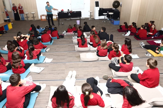 Bilim Merkezi'ne ulaşan öğrenciler, gün boyunca bilimsel temalarla zenginleştirilmiş etkinliklerde yer alıyor.