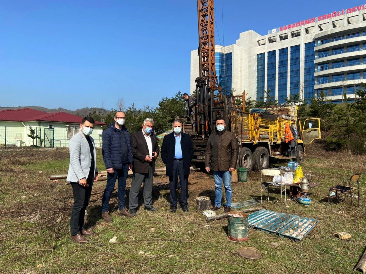 Başkan Bozkurt, Çiğdemli Köprüsü’nün ardından, Kdz. Ereğli Devlet Hastanesi bölgesine yapılacak olan Kz. Ereğli Ağız ve Diş Sağlığı Merkezi (ADSM) arazisinde devam eden sondaj çalışmalarını yerinde takip etti. Devam eden fizibilite ve sondaj çalışmalarıyla ilgili yetkililerden bilgi alan Bozkurt, amaçlarının ADSM’nin en kısa sürede kendi binasında hizmet verir duruma gelmesi olduğunu söyledi. Bozkurt’a, Yönetim Kurulu Üyesi Halil Kırtay, Gençlik Kolları Başkanı Tunay Berber, Başkan Yardımcısı Muhammed Orhan ile Kdz. Ereğli Ağız ve Diş Sağlığı Merkezi İdari ve Mali İşler Müdürü Ercan Özen de eşlik etti.