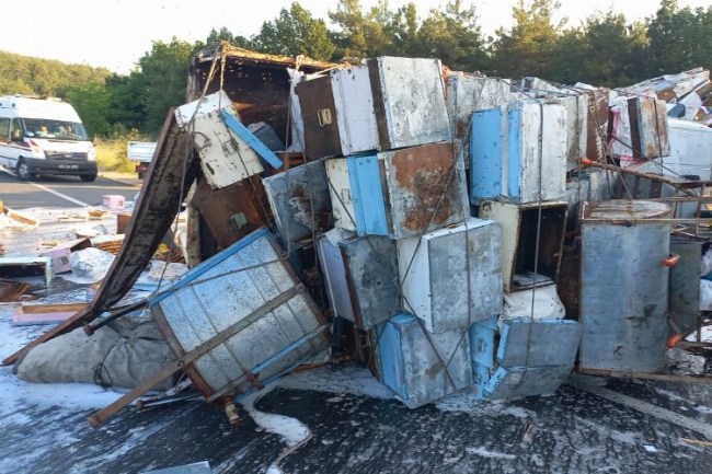 Erdoğan DEMİR / EDİRNE (İGFA) - Alınan bilgiye göre emniyet şeridinde duran arı kovanları yüklü bir kamyona arkadan gelen başka bir tır çarptı.
