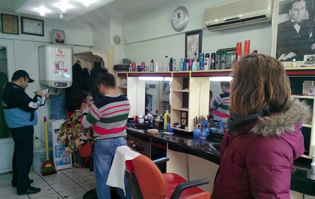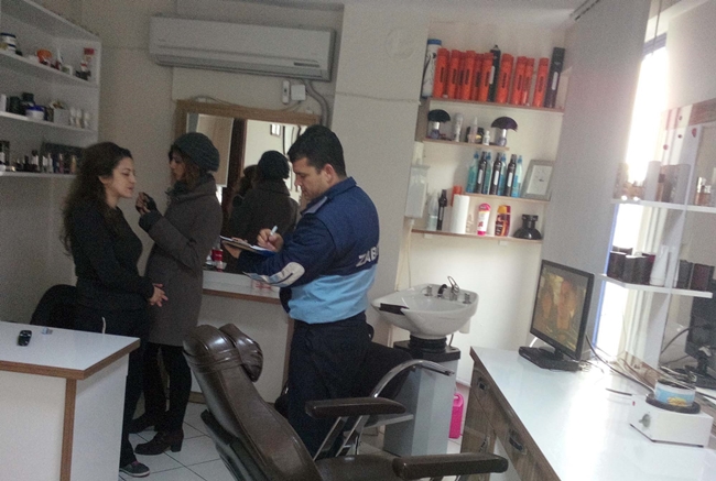 Kuaförlerin kullandıkları aletlerin temizliğini, malzemelerin yeterliliğini ve genel temizliğin normlara uygun olup olmadığını kontrol eden zabıta ekipleri, eksik evrakları bulunan ve gerekli temizlik şartlarına uymayan esnafları uyarırken, bir sonraki denetimde istenilen şartların yerine getirilmemesi halinde ceza işleminin uygulanacağını belirtti.