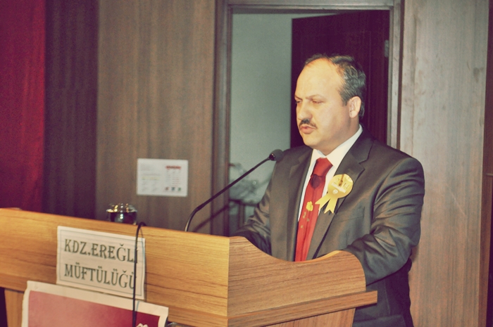 Ardından söz alan Kdz. Ereğli Belediye Başkanı Hüseyin Uysal, Peygamberimizi ve onun son nefesine kadar tüm insanlığa anlattığı Kuran-ı Kerimin iyi anlaşılması gerektiğini belirterek başladığı konuşmasında, Allahın selamı rahmeti bereketi afiyeti üzerinizde olsun, Kutlu Doğum Haftamız mübarek olsun, Kutlu Doğum yüreklerimizin ülkemizin İslam âleminin ve bütün insanlığın merhametle onarılmasına vesile olsun, Allah katın da makbul olan tevazu, itidal üzerine olanıdır, Buda her hak sahibine alacağını vermektir. Halka karşı mütevazı olmak ise huzur ortamı sağlamak söz ve konuşmalarından güler yüzlü ve umut verici olmak sorulara yumuşak cevap vermek, davetlere icabet etmek, ihtiyaçları karşılamak ve kendisini halktan üstün görmemektir. Peygamberimizin samimiyet anlayışı bu temellere dayanır, ibn macenin rivayet hadisi şöyle der, Bir gün adamın biri peygamber efendimizin huzuruna çıkar,Peygamberlik heybetinden titremeye başlar,durumu fark eden Hz. Peygamber efendimiz şöyle buyurmuştur; Kendine gel ben bir hükümdar değilim,ben ancak kureyş kabilesinden kurumuş et yiyen bir kadının oğluyum,Selam Sana Ey Nazlı Nebi,Selam Sana Göz Bebeğim,Mevlamın Kudreti ile Selam,Selam Sana Nuri Dilara,Selam Sana Hak Habibi, Rahmanın kudreti ile selam,Rebiülevvel ayının 12.gecesi 21.yüzyılın olağanca genişliği ile yeryüzü ve Efendiler Efendisi gönüllerde doğmaya devam ediyor,Allahın emaneti olunuz, şeklinde konuştu..