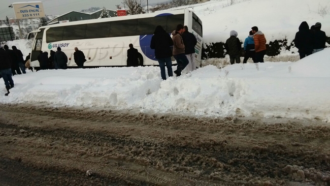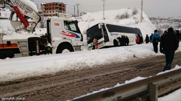 Zonguldak'tan Ereğli istikametine gelen yolcu otobüsü Kdz. Ereğli Ömerli Mevkindeki hastane kavşağında yerlerin buz tutması nedeniyle kayarak; yol kenarındaki bankete düştü..