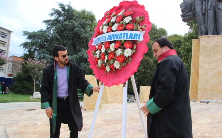 Atatürk Anıtı önünde gerçekleştirilen programa Cumhuriyet Halk Partisi Zonguldak Milletvekili Avukat Ünal Demirtaş, ÖMilliyetçi Hareket Partisi Karadeniz Ereğli İlçe Başkanı Rahman Demirtürk’ün yanı sıra Zonguldak Barosuna kayıtlı Karadeniz Ereğli’de görev yapan avukatlar katıldı.