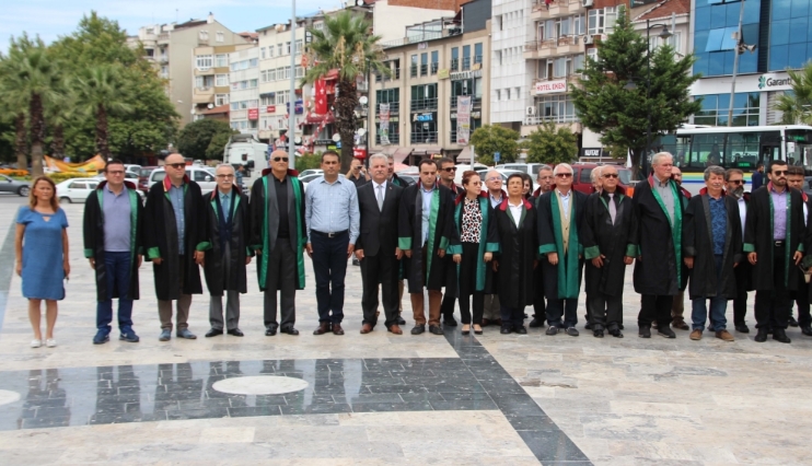 Karadeniz Ereğli’de Adli Yılın başlaması dolayısıyla tören düzenlendi. Törende Avukatlar ve adliye çalışanları Atatürk Anıtı’na çelenk sundu, saygı duruşunda bulundu, İstiklal Marşını söyledi.