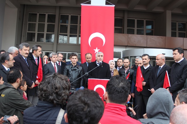 Zonguldak Valisi Ahmet Çınar törende yaptığı konuşmada, Afrin'de yapılan mücadelenin terörle mücadele gibi görünse de dünyanın egemen emperyalistlerine ve zalim devletlerine karşı yapılan bir savaş olduğunu söyledi. Tarihin en kritik dönemini yaşadıklarını ifade eden Vali Çınar; "Tarih bu emperyalistlere uşaklık yapan, köpeklik yapan ama maalesef Müslüman çocukları da olsa bu teröristleri asla affetmeyeceğiz. Gelecekte bütün dünya bu çocukları yeni nesiller bu teröristleri, Müslümanların en zor zamanlarında onlara eziyet eden, onları sömüren emperyalistlere uşaklık edenler olarak hatırlayacak.